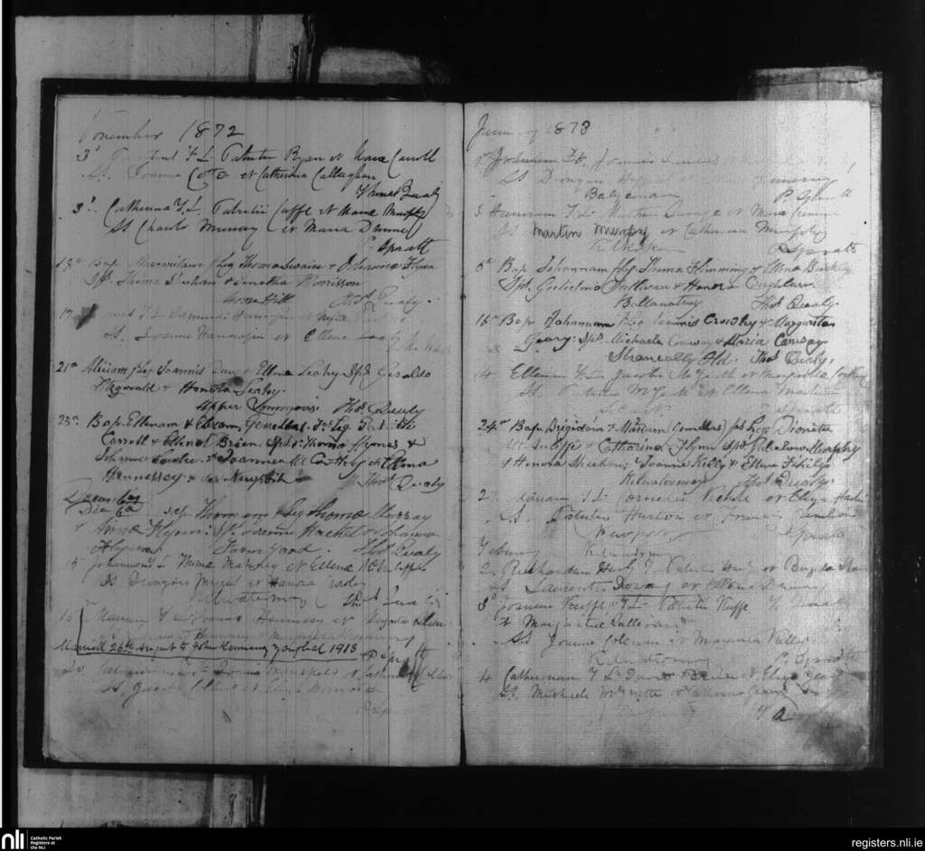 Knockanore; County of Waterford; Diocese of Waterford and Lismore. Baptisms, Nov. 1872 to Feb. 1873