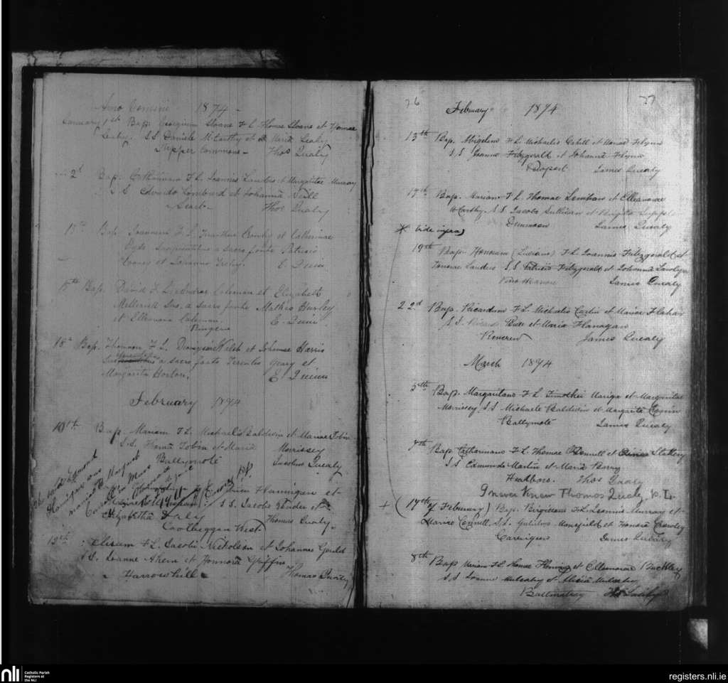 Knockanore; County of Waterford; Diocese of Waterford and Lismore. Baptisms, Jan. 1874 to Mar. 1874