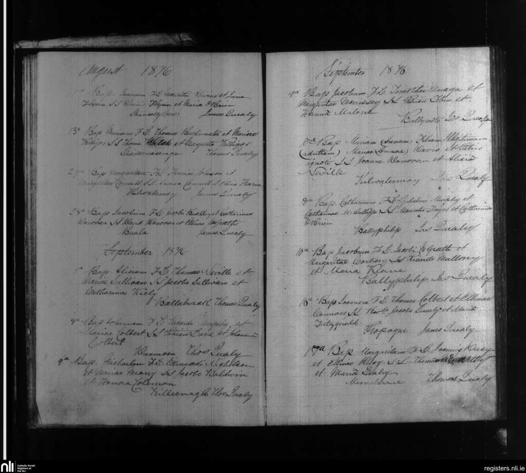 Knockanore; County of Waterford; Diocese of Waterford and Lismore. Baptisms, Aug. 1876 to Sep. 1876