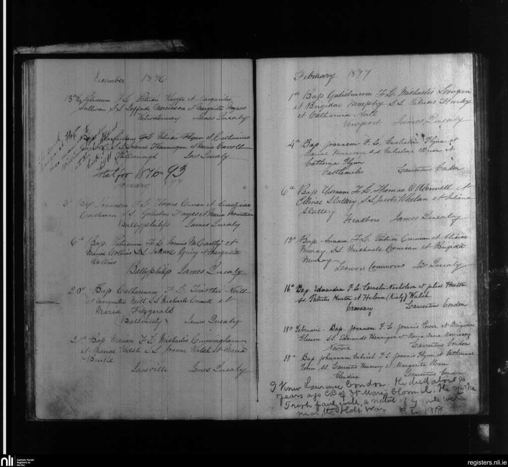 Knockanore; County of Waterford; Diocese of Waterford and Lismore. Baptisms, Dec. 1876 to Feb. 1877