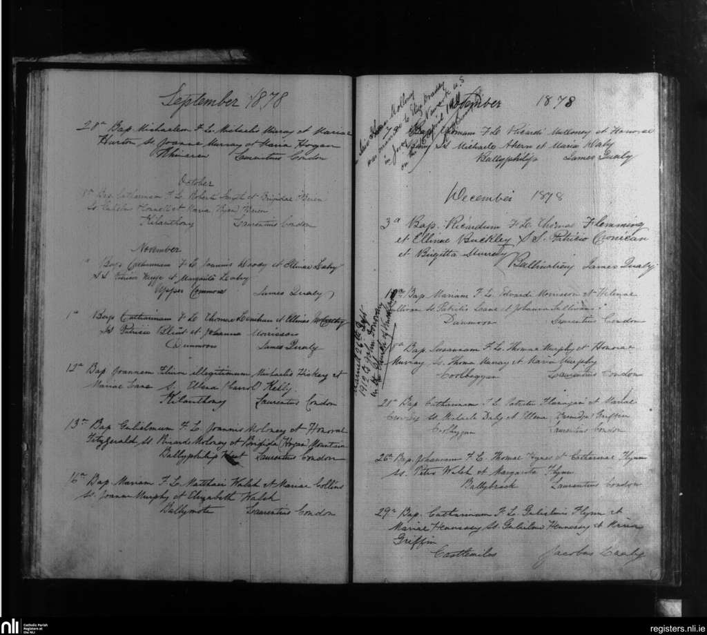 Knockanore; County of Waterford; Diocese of Waterford and Lismore. Baptisms, Sep. 1878 to Dec. 1878