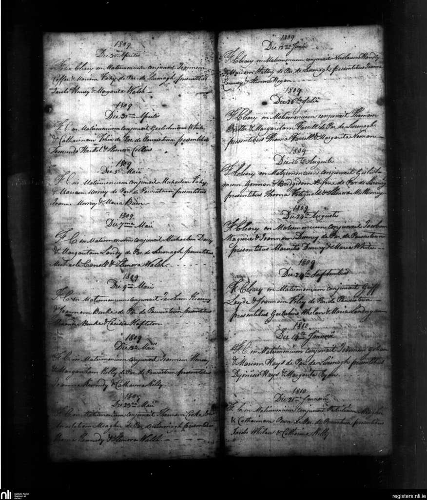 Powerstown; County of Tipperary; Diocese of Waterford and Lismore. Marriages, Apr. 1809 to Jan. 1810