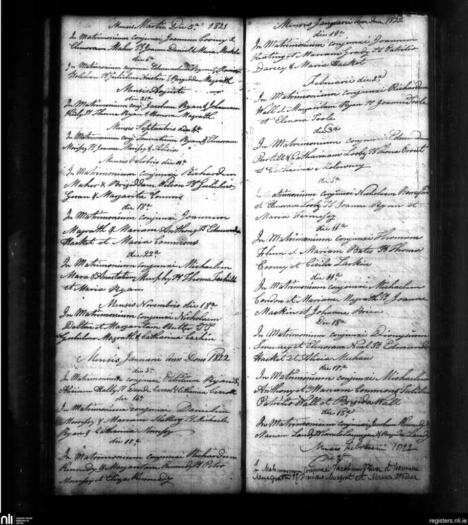 Powerstown; County of Tipperary; Diocese of Waterford and Lismore. Marriages, Mar. 1821 to Feb. 1822