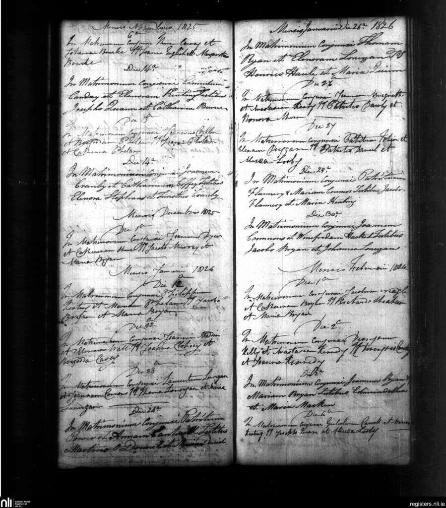 Powerstown; County of Tipperary; Diocese of Waterford and Lismore. Marriages, Nov. 1825 to Feb. 1826