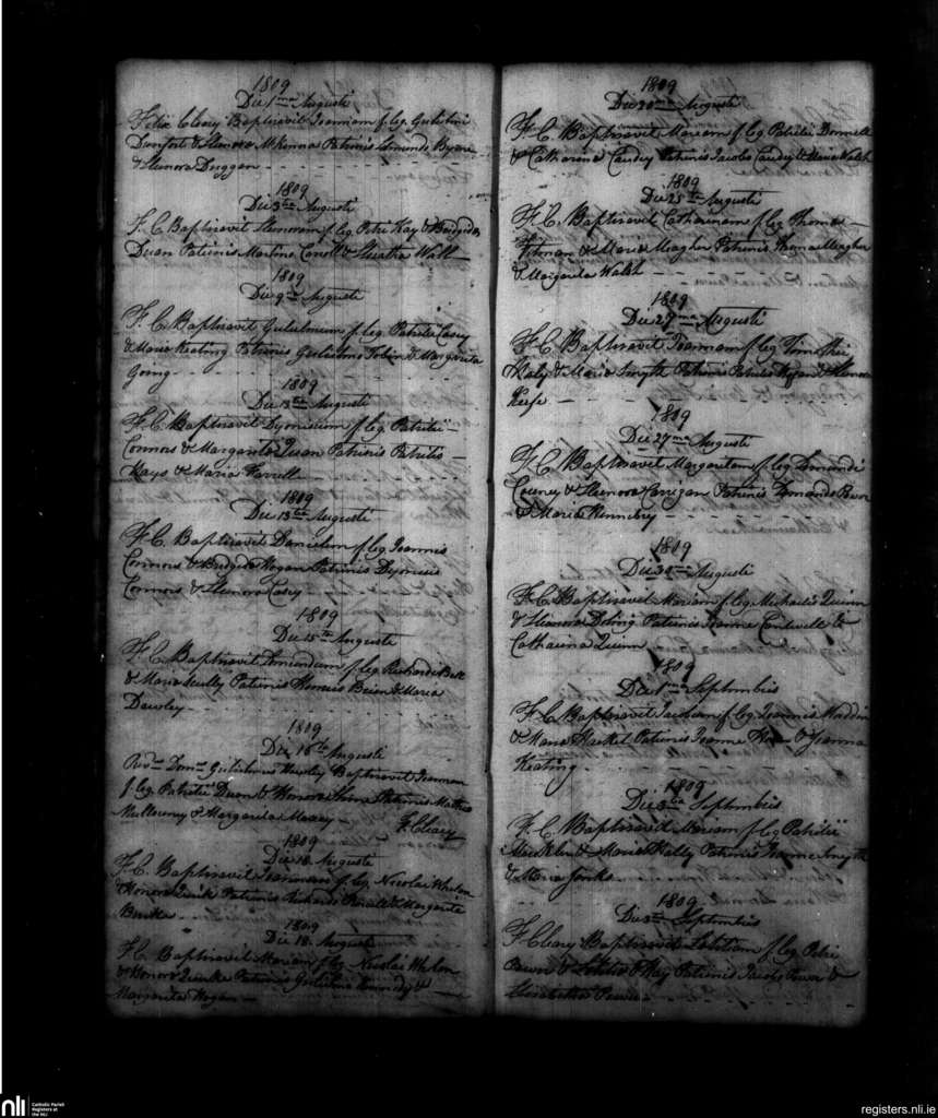 Powerstown; County of Tipperary; Diocese of Waterford and Lismore. Baptisms, Aug. 1809 to Sep. 1809