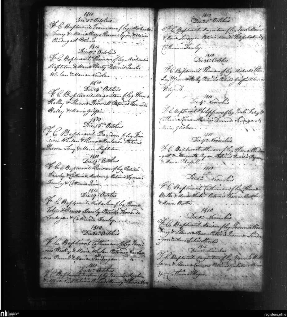 Powerstown; County of Tipperary; Diocese of Waterford and Lismore. Baptisms, Oct. 1810 to Nov. 1810
