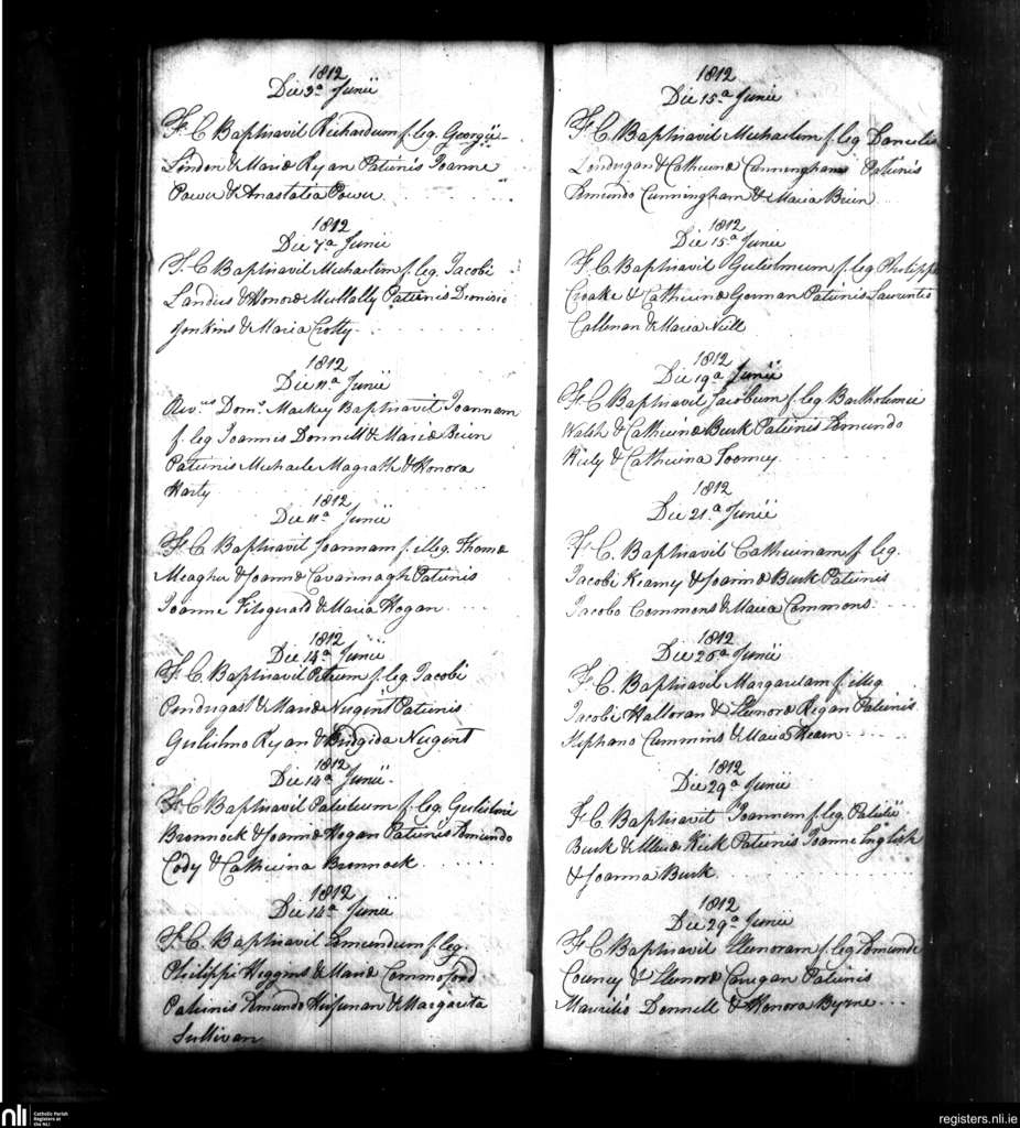 Powerstown; County of Tipperary; Diocese of Waterford and Lismore. Baptisms, June 1812