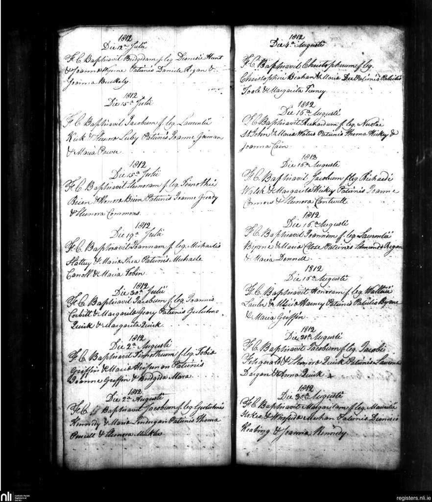 Powerstown; County of Tipperary; Diocese of Waterford and Lismore. Baptisms, July 1812 to Aug. 1812