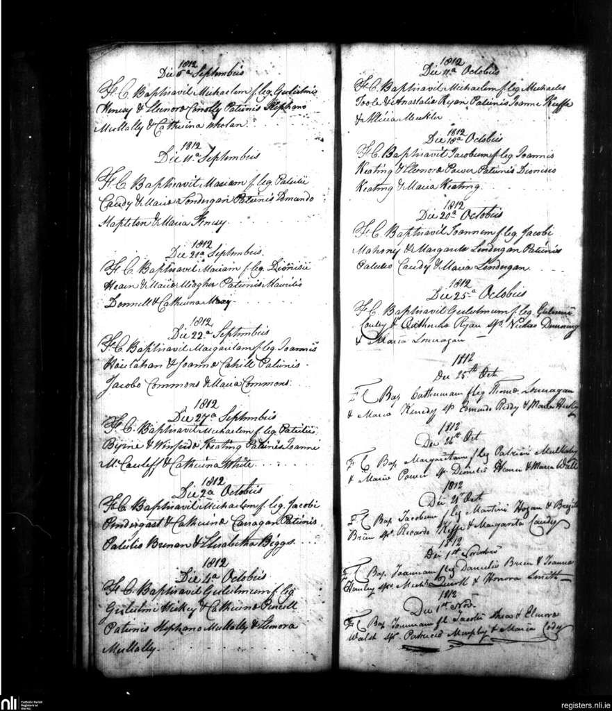 Powerstown; County of Tipperary; Diocese of Waterford and Lismore. Baptisms, Sep. 1812 to Nov. 1812