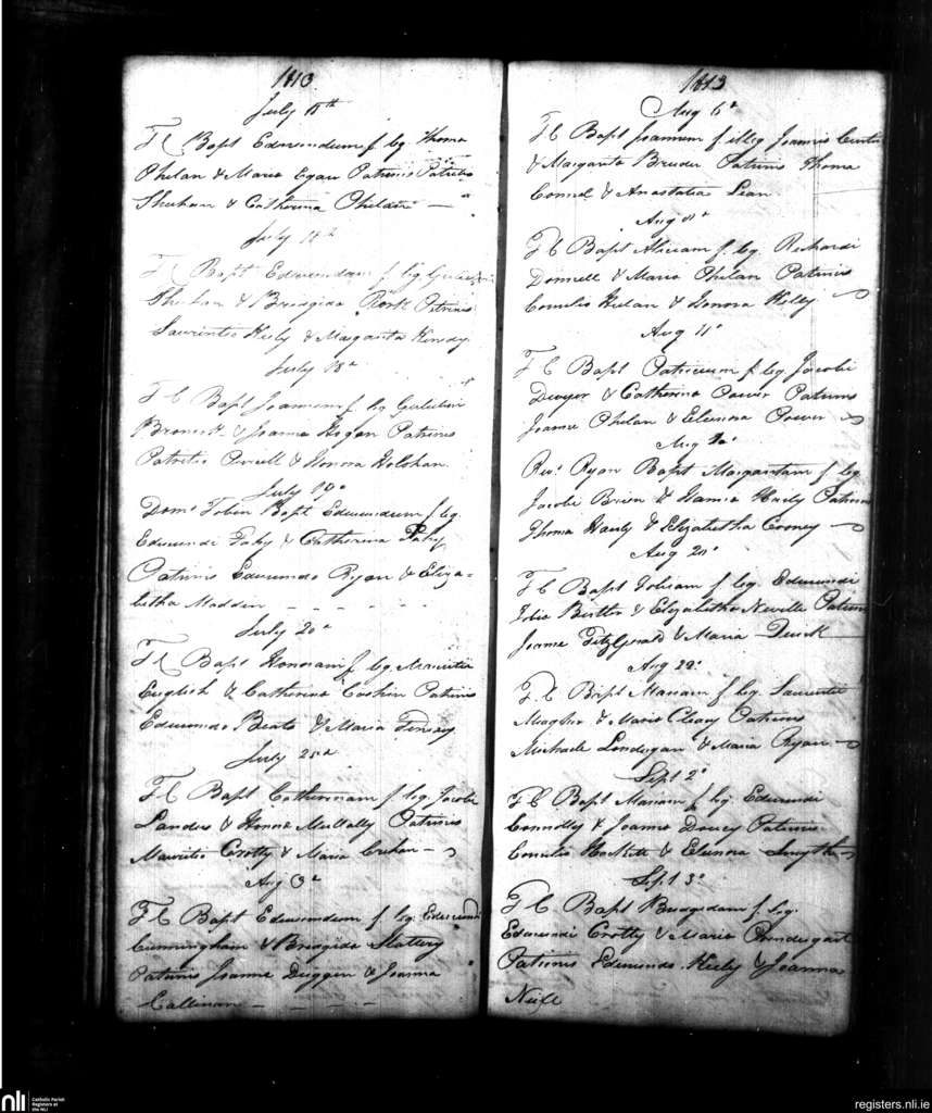 Powerstown; County of Tipperary; Diocese of Waterford and Lismore. Baptisms, July 1813 to Sep. 1813