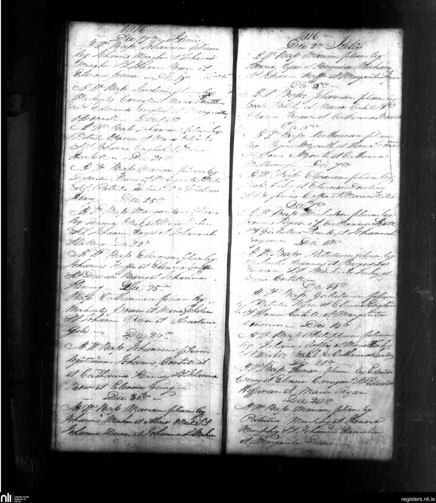 Powerstown; County of Tipperary; Diocese of Waterford and Lismore. Baptisms, June 1816 to July 1816