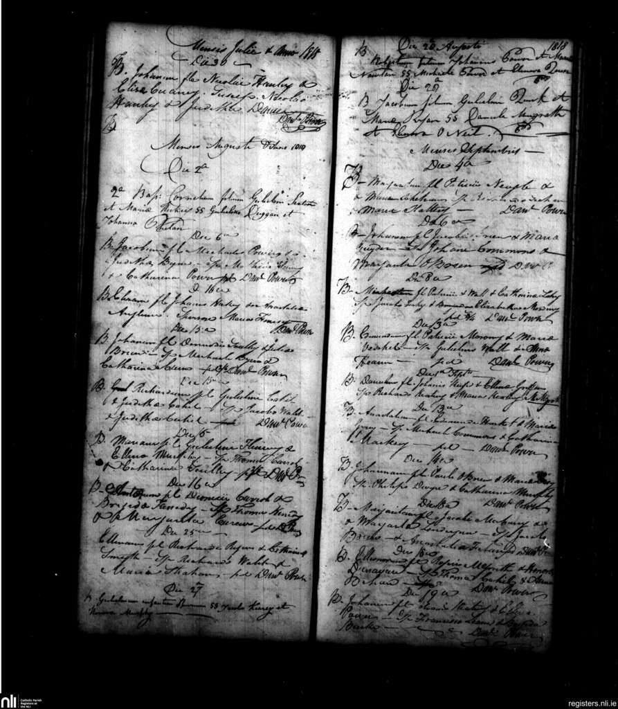 Powerstown; County of Tipperary; Diocese of Waterford and Lismore. Baptisms, July 1818 to Sep. 1818