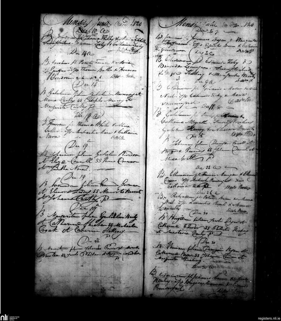 Powerstown; County of Tipperary; Diocese of Waterford and Lismore. Baptisms, June 1820 to July 1820