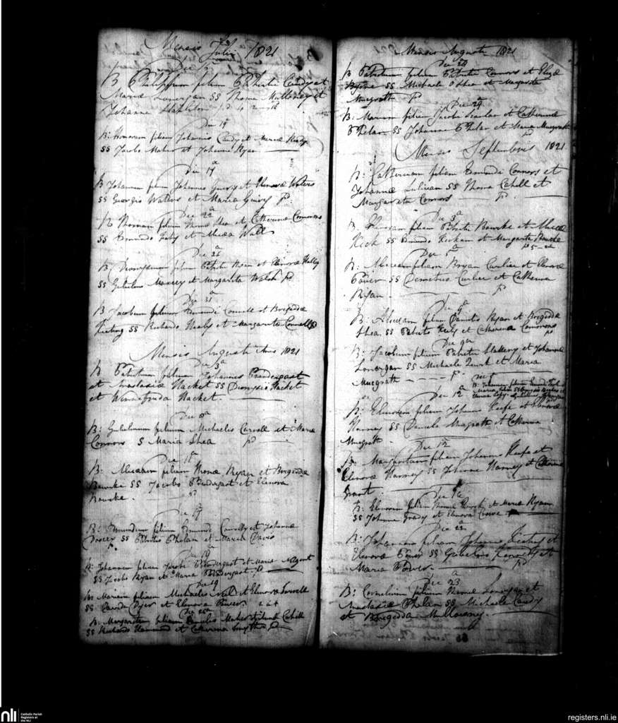 Powerstown; County of Tipperary; Diocese of Waterford and Lismore. Baptisms, July 1821 to Sep. 1821