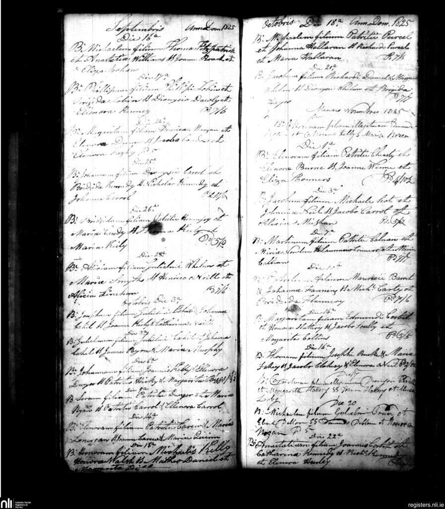 Powerstown; County of Tipperary; Diocese of Waterford and Lismore. Baptisms, Sep. 1825 to Nov. 1825