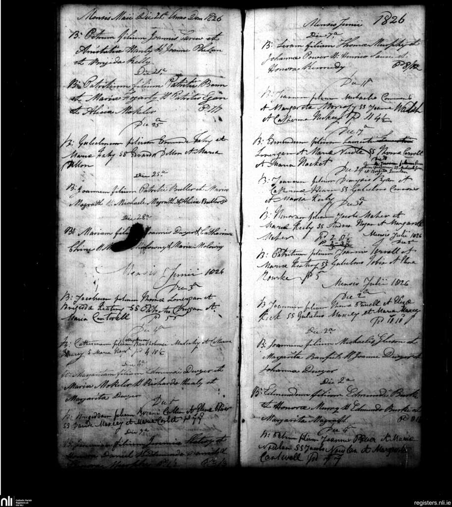 Powerstown; County of Tipperary; Diocese of Waterford and Lismore. Baptisms, May 1826 to July 1826