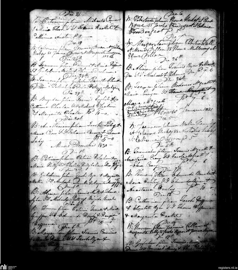 Powerstown; County of Tipperary; Diocese of Waterford and Lismore. Baptisms, Nov. 1830 to Jan. 1831