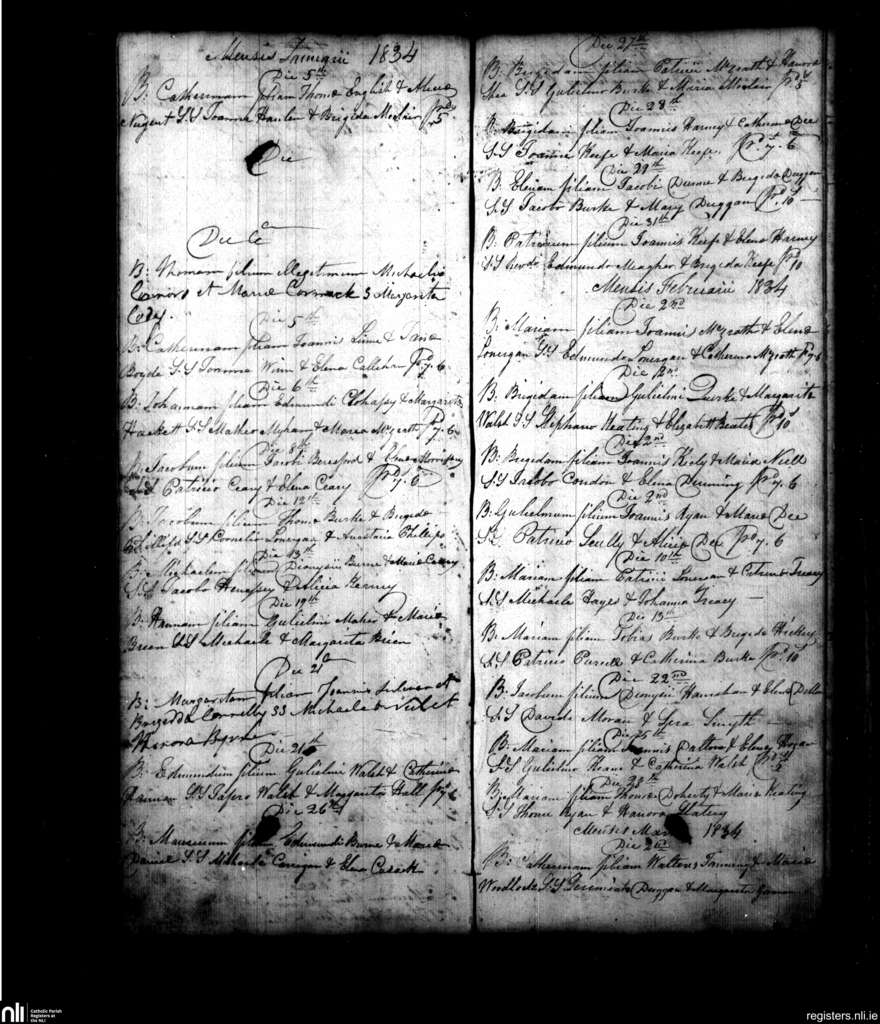 Powerstown; County of Tipperary; Diocese of Waterford and Lismore. Baptisms, Jan. 1834 to Mar. 1834