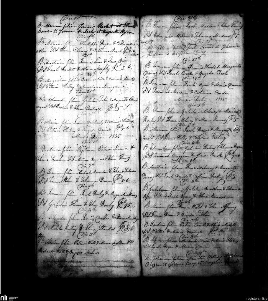 Powerstown; County of Tipperary; Diocese of Waterford and Lismore. Baptisms, May 1835 to July 1835