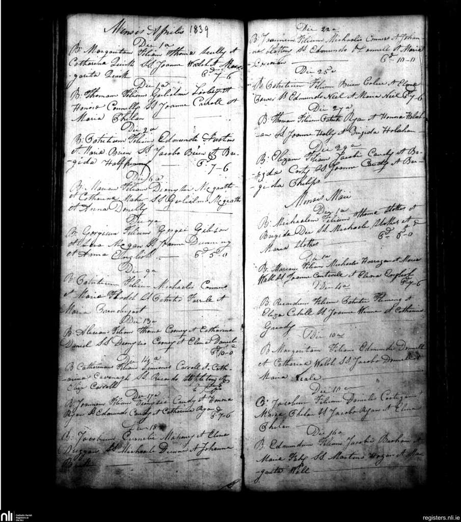 Powerstown; County of Tipperary; Diocese of Waterford and Lismore. Baptisms, Apr. 1839 to May 1839