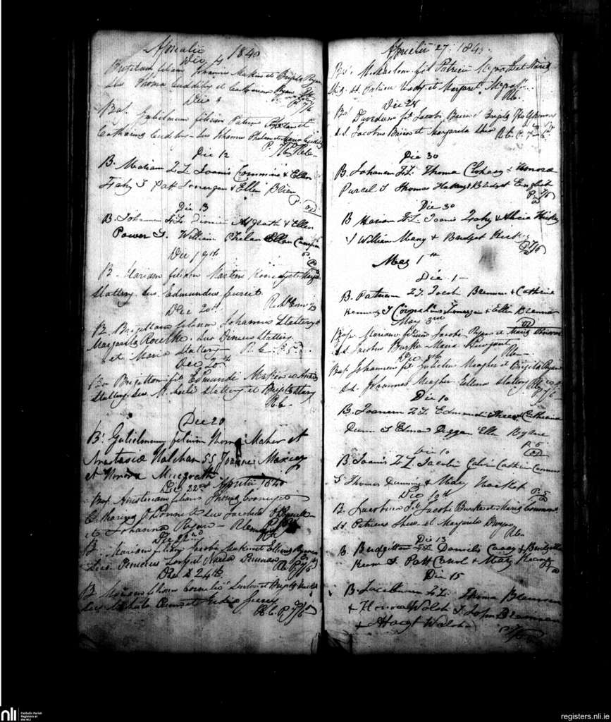 Powerstown; County of Tipperary; Diocese of Waterford and Lismore. Baptisms, Apr. 1840 to May 1840