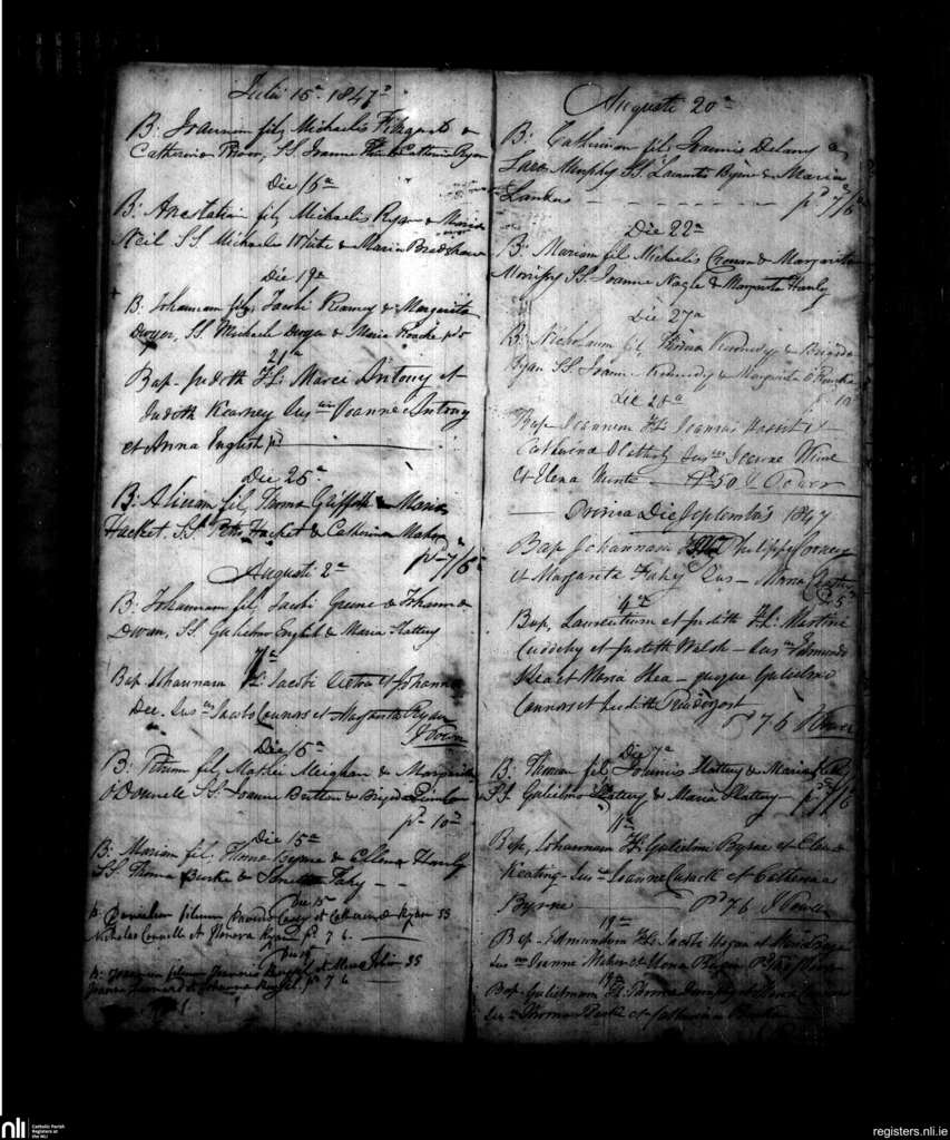 Powerstown; County of Tipperary; Diocese of Waterford and Lismore. Baptisms, July 1847 to Sep. 1847