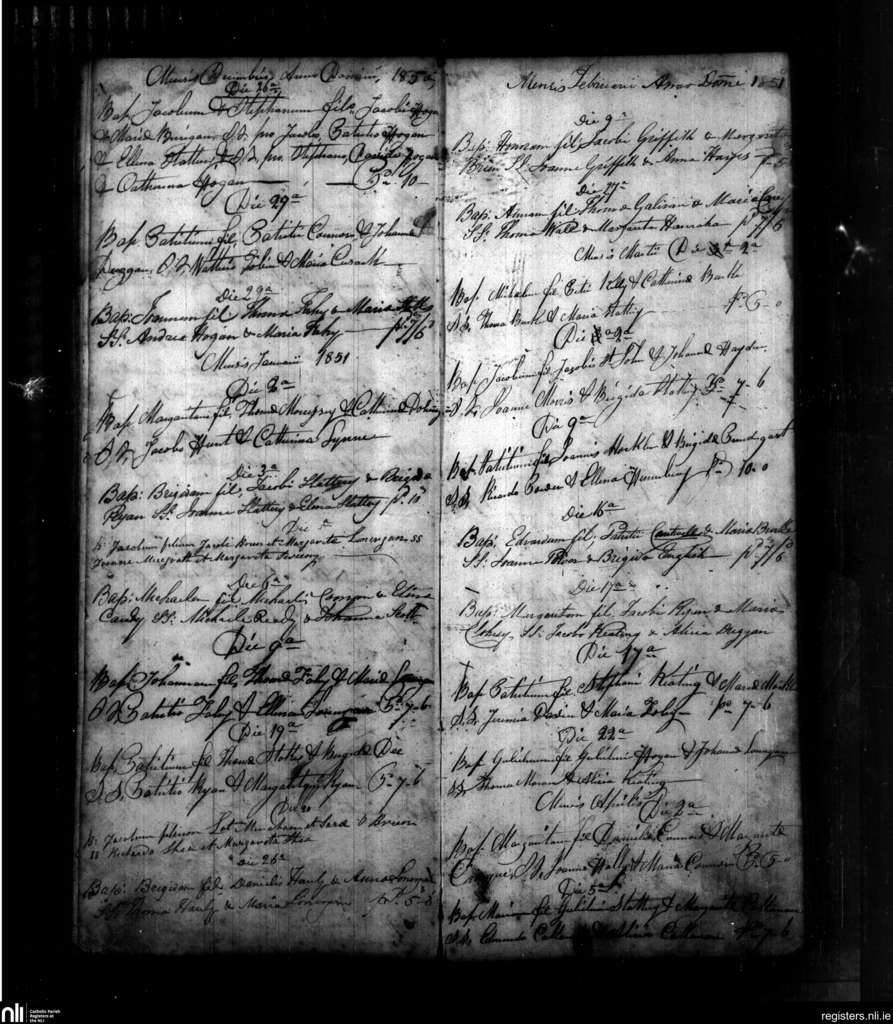 Powerstown; County of Tipperary; Diocese of Waterford and Lismore. Baptisms, Dec. 1850 to Apr. 1851