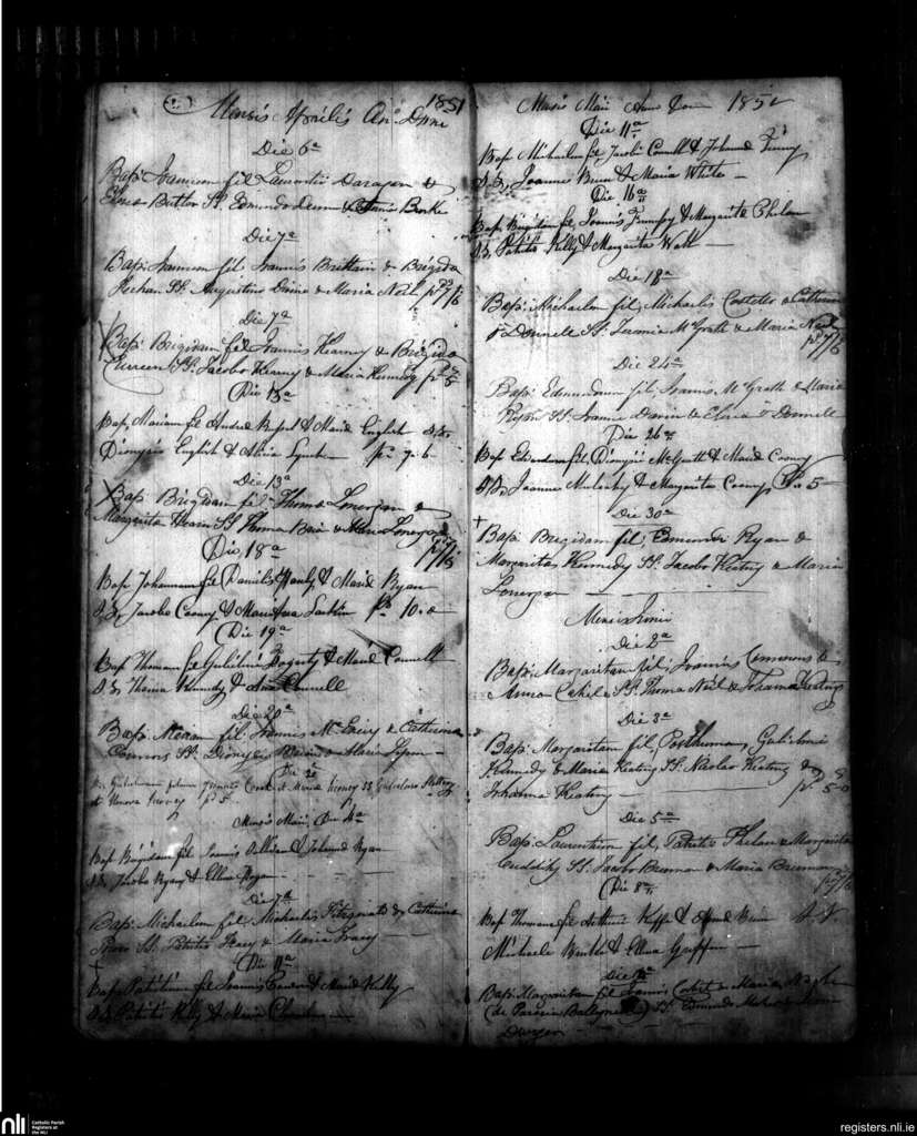 Powerstown; County of Tipperary; Diocese of Waterford and Lismore. Baptisms, Apr. 1851 to June 1851