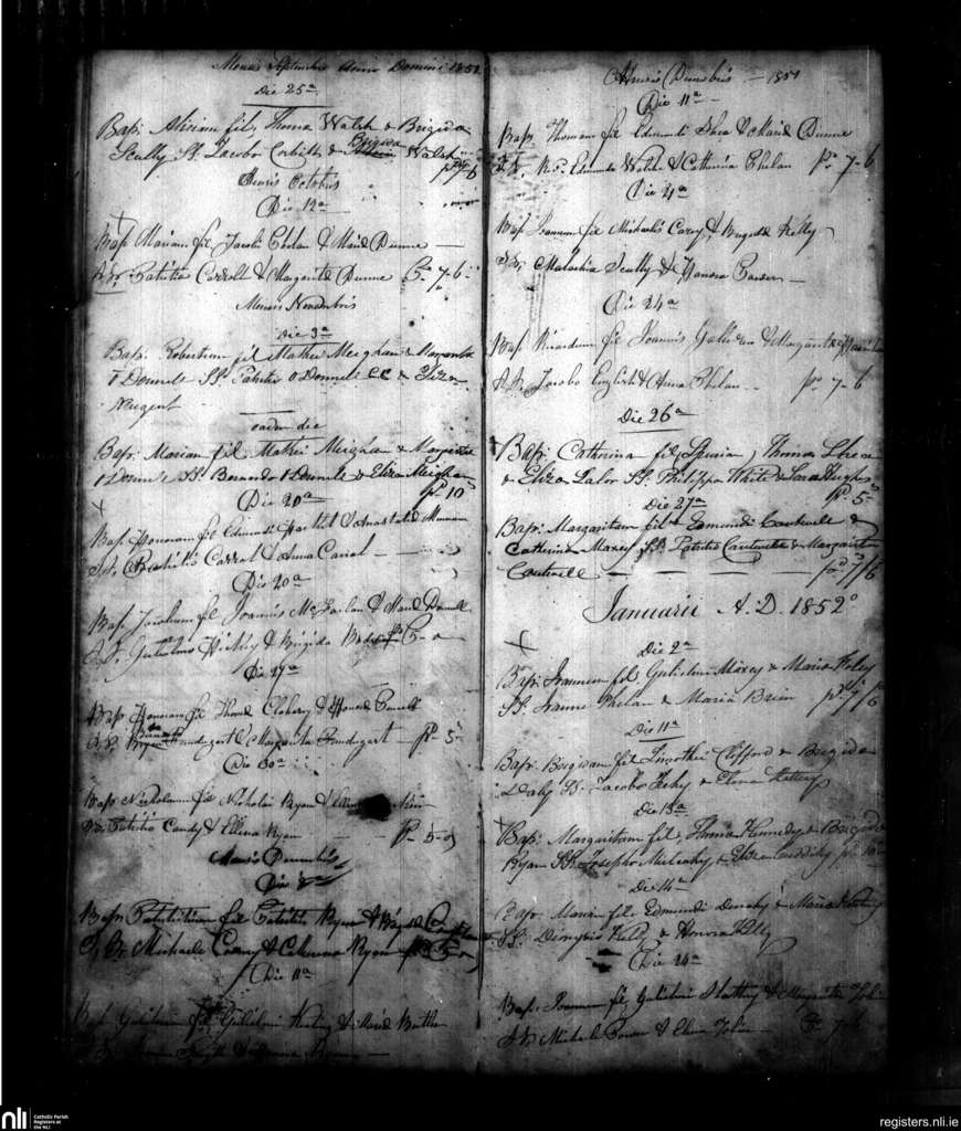 Powerstown; County of Tipperary; Diocese of Waterford and Lismore. Baptisms, Sep. 1851 to Jan. 1852