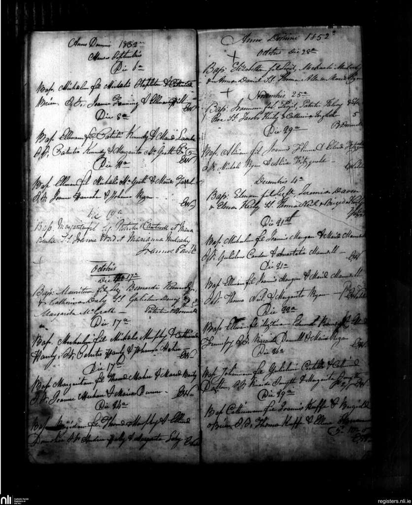 Powerstown; County of Tipperary; Diocese of Waterford and Lismore. Baptisms, Sep. 1852 to Dec. 1852
