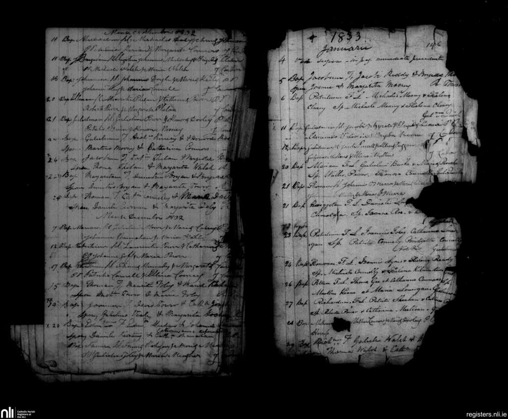 Mothel and Rathgormack; County of Waterford; Diocese of Waterford and Lismore. Baptisms, Nov. 1832 to Jan. 1833