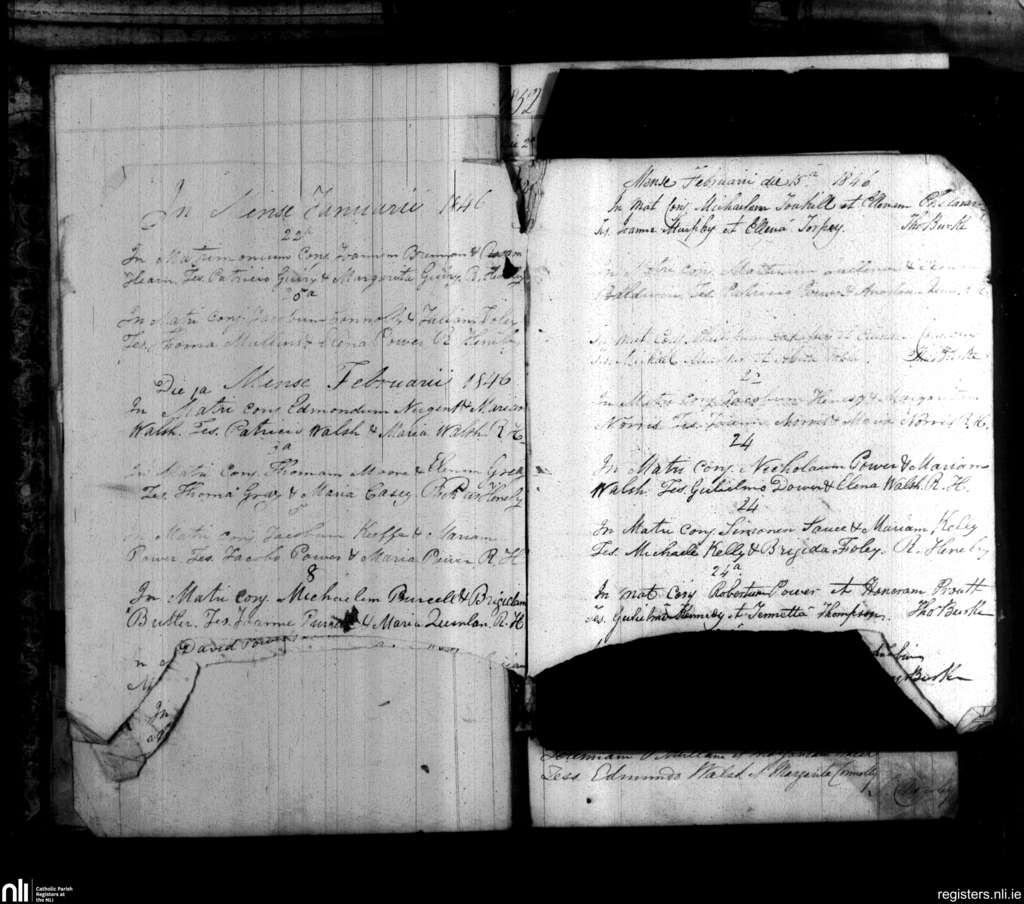 Mothel and Rathgormack; County of Waterford; Diocese of Waterford and Lismore. Marriages, Jan. 1846 to Feb. 1846