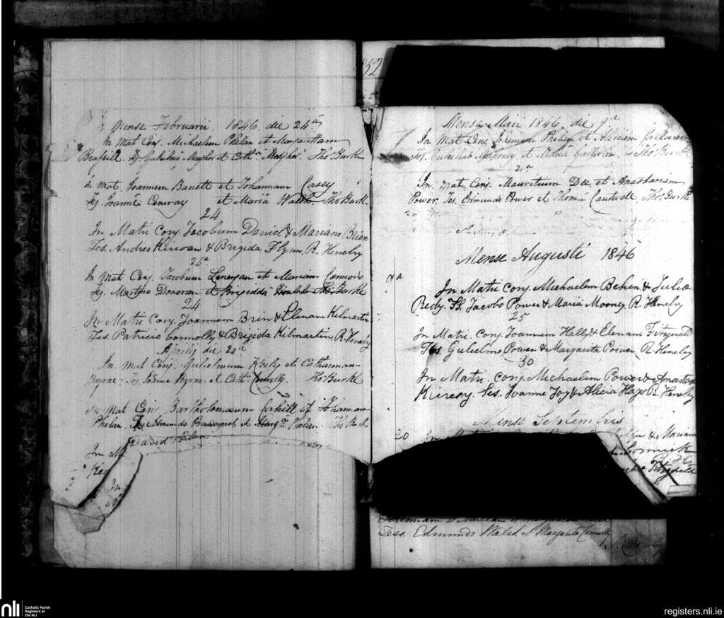 Mothel and Rathgormack; County of Waterford; Diocese of Waterford and Lismore. Marriages, Feb. 1846 to Sep. 1846