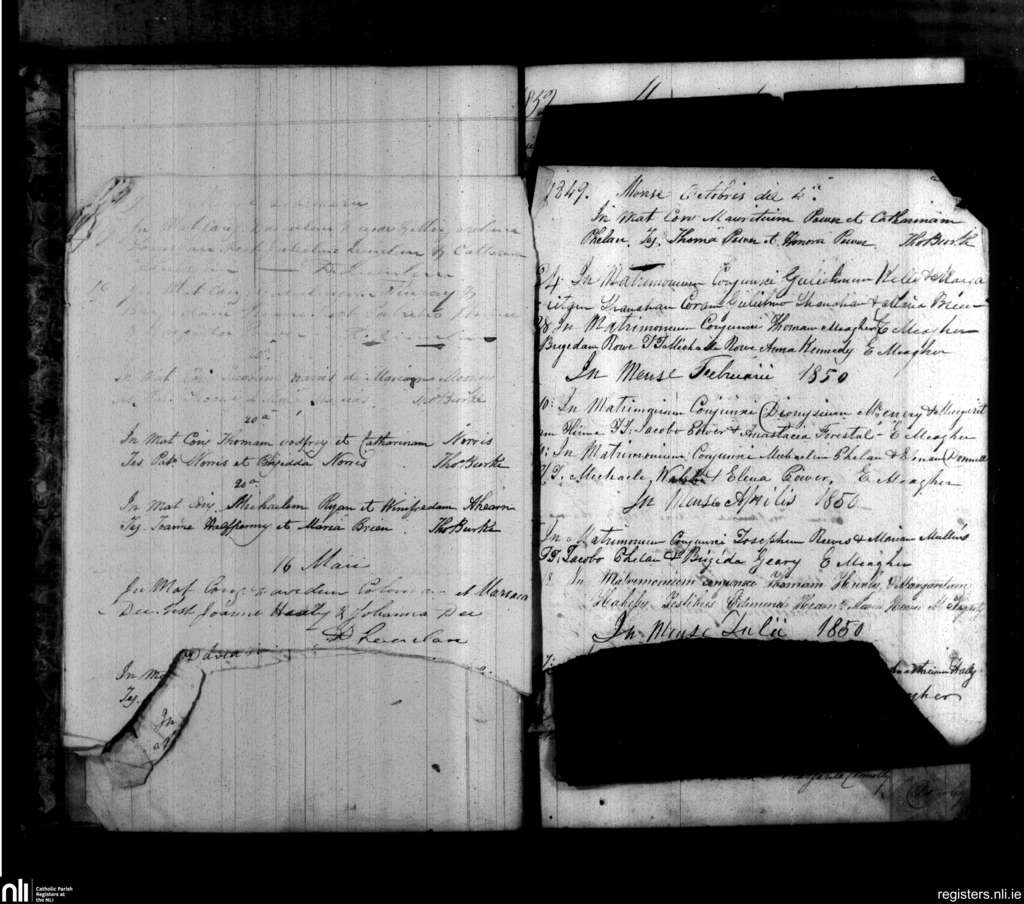 Mothel and Rathgormack; County of Waterford; Diocese of Waterford and Lismore. Marriages, Feb. 1849 to July 1850