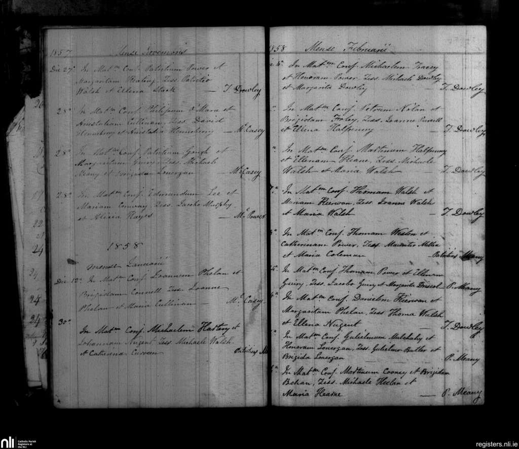 Mothel and Rathgormack; County of Waterford; Diocese of Waterford and Lismore. Marriages, Nov. 1857 to Feb. 1858