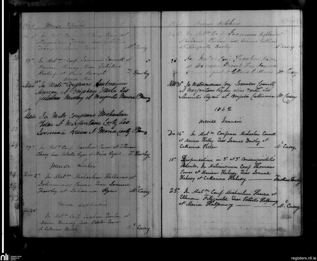 Mothel and Rathgormack; County of Waterford; Diocese of Waterford and Lismore. Marriages, Apr. 1861 to Jan. 1862