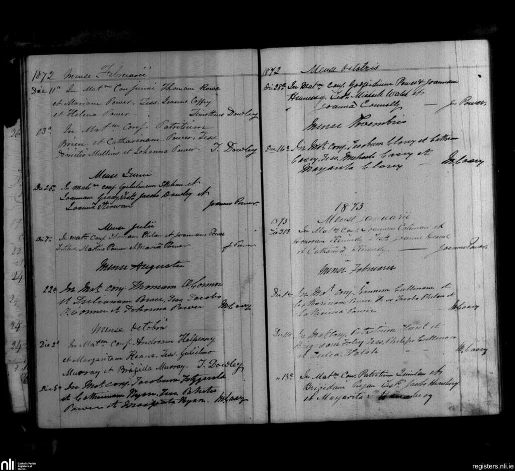 Mothel and Rathgormack; County of Waterford; Diocese of Waterford and Lismore. Marriages, Feb. 1872 to Feb. 1873