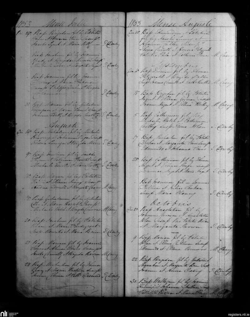 Mothel and Rathgormack; County of Waterford; Diocese of Waterford and Lismore. Baptisms, July 1853 to Oct. 1853