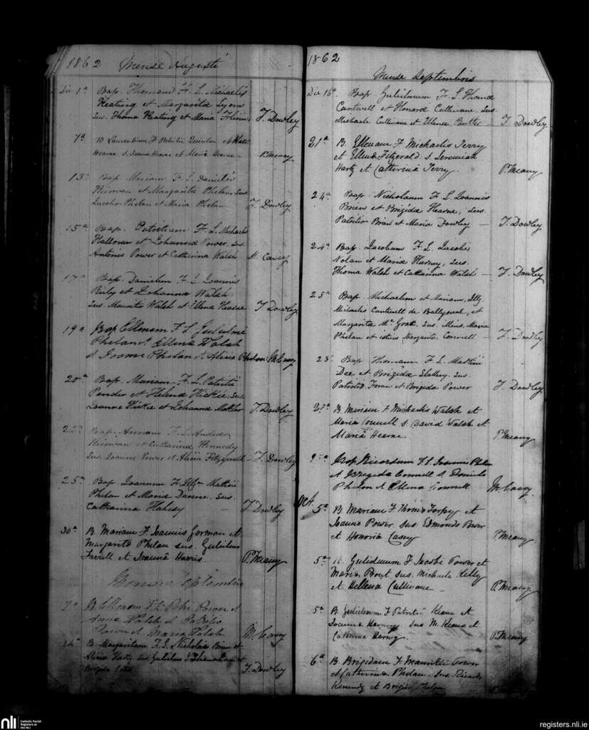Mothel and Rathgormack; County of Waterford; Diocese of Waterford and Lismore. Baptisms, Aug. 1862 to Oct. 1862