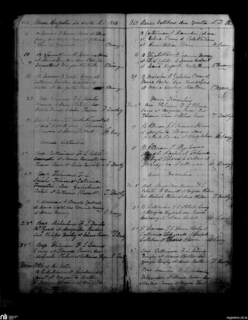 Mothel and Rathgormack; County of Waterford; Diocese of Waterford and Lismore. Baptisms, Aug. 1863 to Dec. 1863