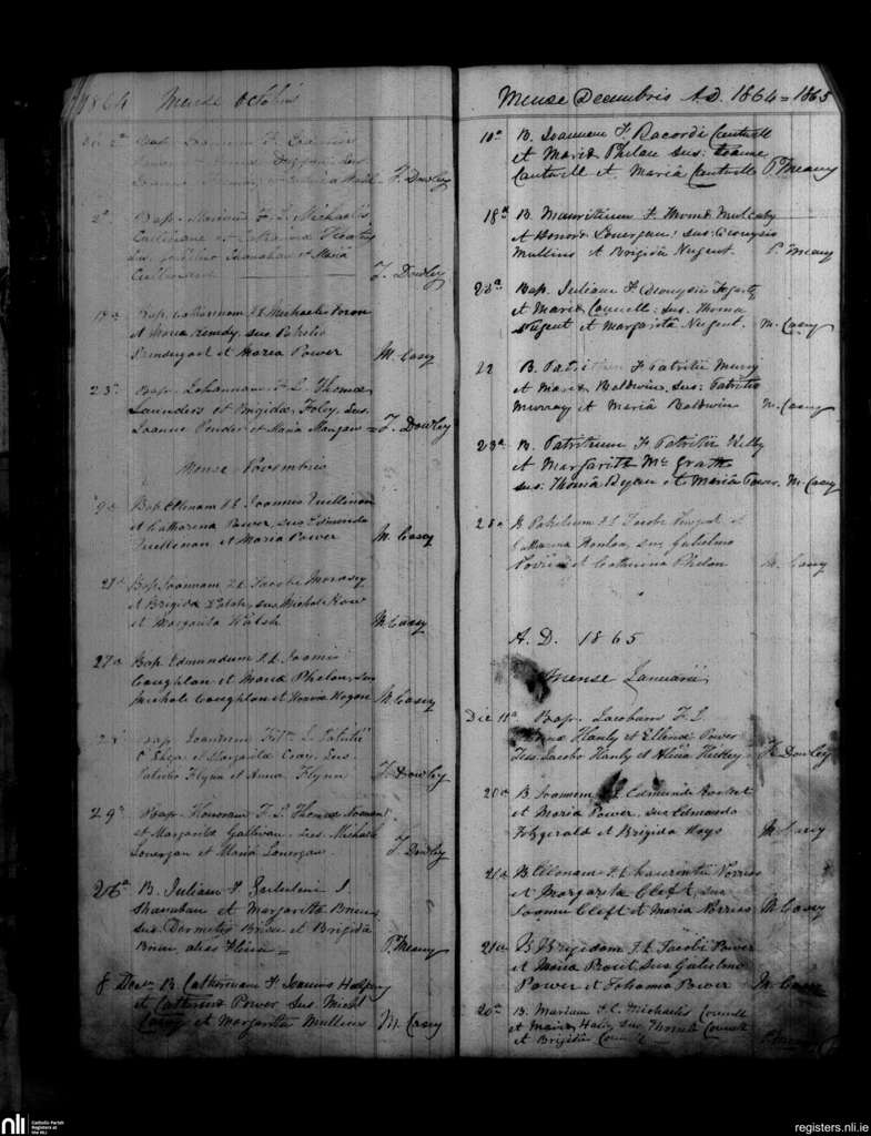 Mothel and Rathgormack; County of Waterford; Diocese of Waterford and Lismore. Baptisms, Oct. 1864 to Jan. 1865