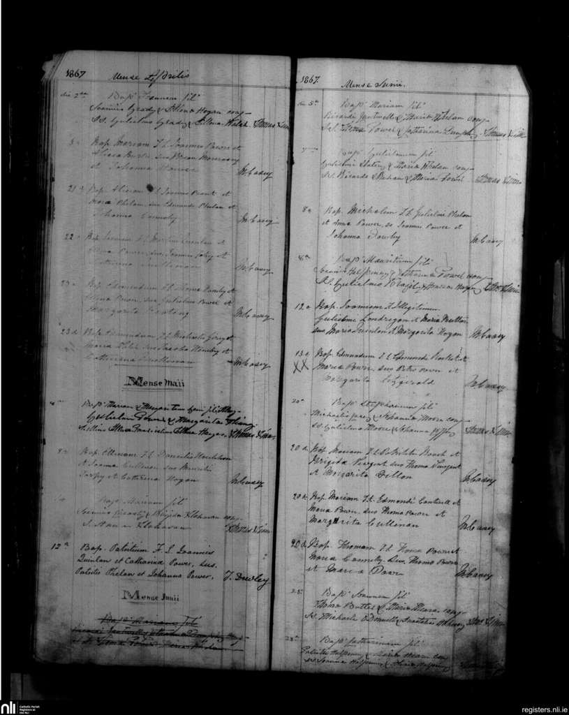Mothel and Rathgormack; County of Waterford; Diocese of Waterford and Lismore. Baptisms, Apr. 1867 to June 1867