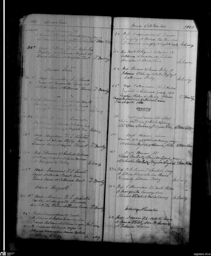 Mothel and Rathgormack; County of Waterford; Diocese of Waterford and Lismore. Baptisms, June 1867 to Nov. 1867