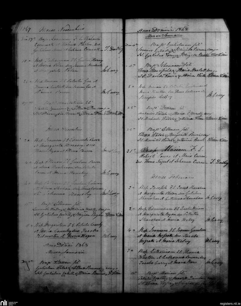Mothel and Rathgormack; County of Waterford; Diocese of Waterford and Lismore. Baptisms, Nov. 1867 to Feb. 1868