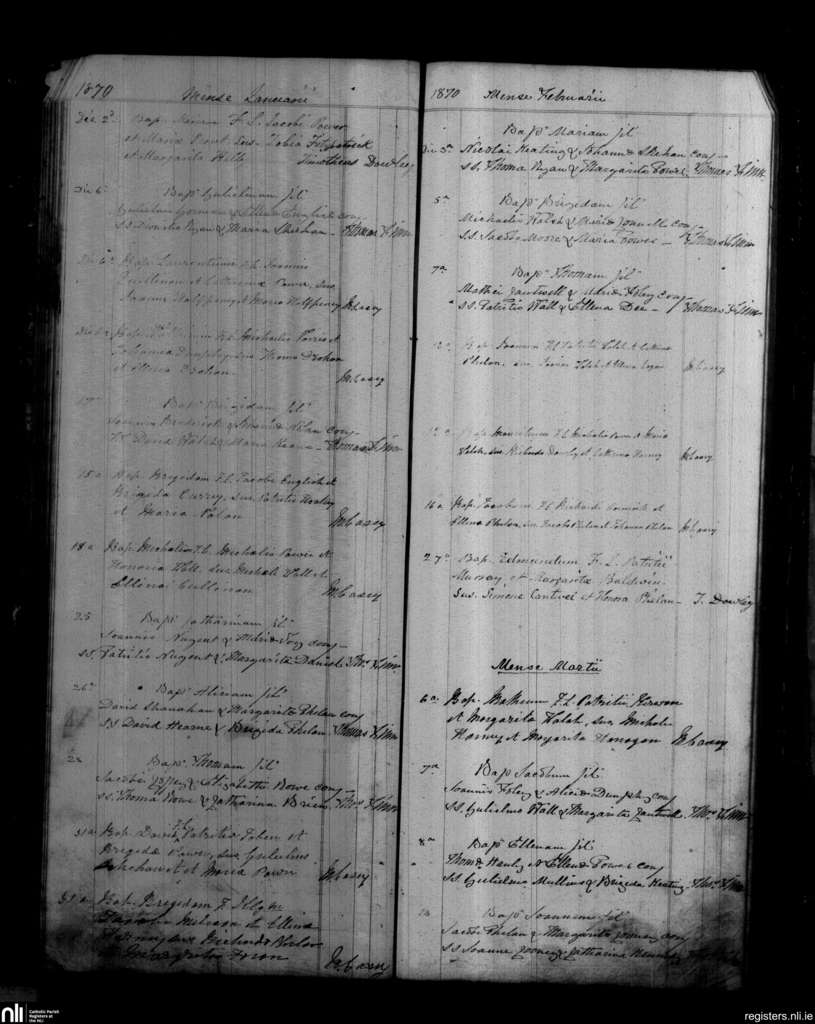 Mothel and Rathgormack; County of Waterford; Diocese of Waterford and Lismore. Baptisms, Jan. 1870 to Mar. 1870