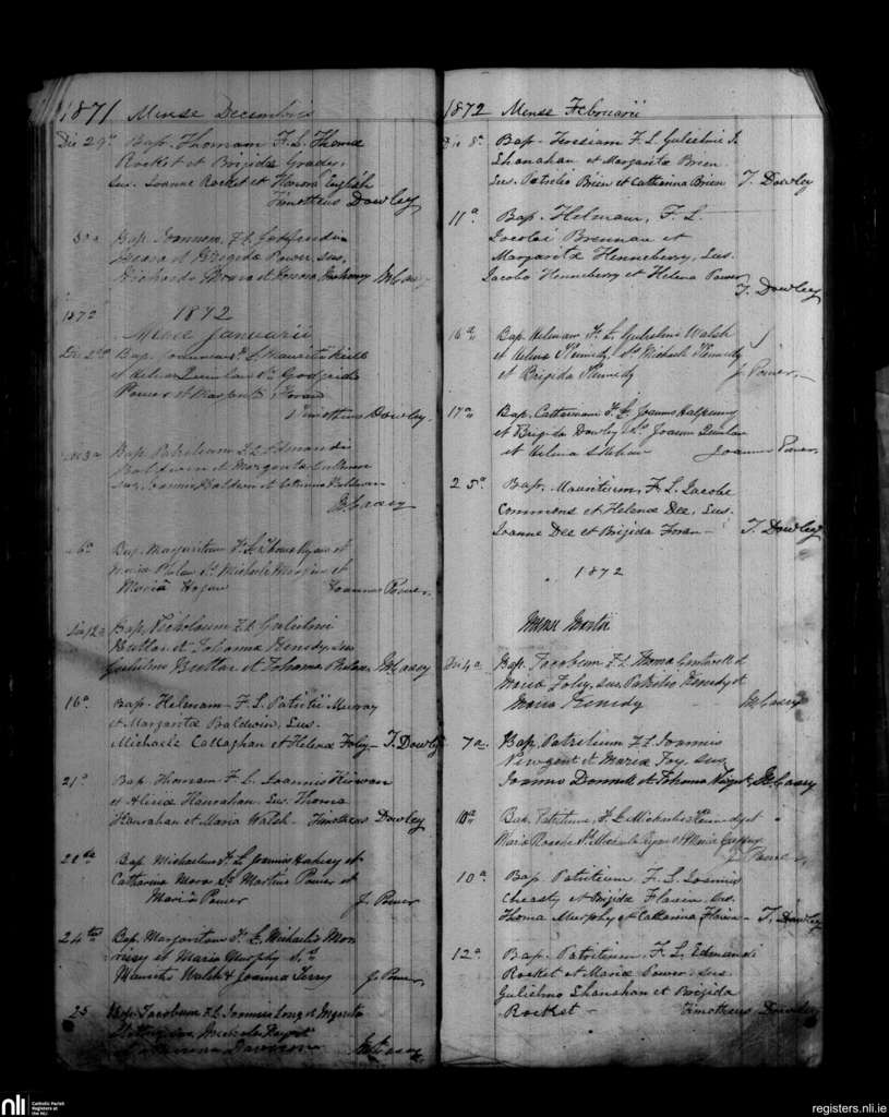 Mothel and Rathgormack; County of Waterford; Diocese of Waterford and Lismore. Baptisms, Dec. 1871 to Mar. 1872