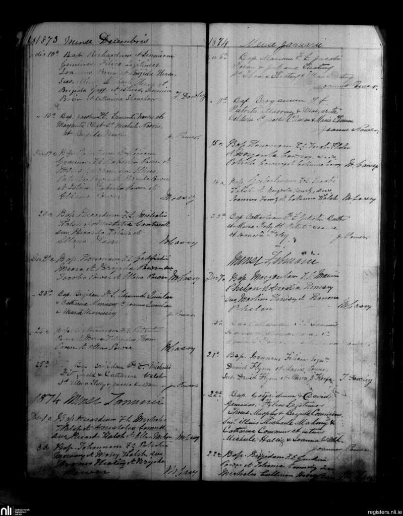 Mothel and Rathgormack; County of Waterford; Diocese of Waterford and Lismore. Baptisms, Dec. 1873 to Feb. 1874