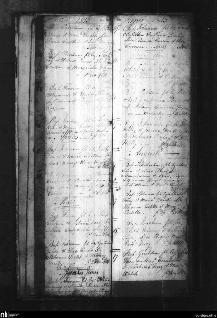 Old and Ring; County of Waterford; Diocese of Waterford and Lismore. Baptisms, Mar. 1813 to Aug. 1813