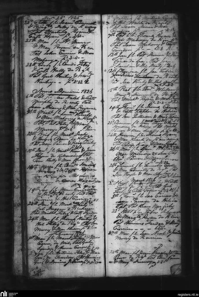 Old and Ring; County of Waterford; Diocese of Waterford and Lismore. Baptisms, Dec. 1825 to Mar. 1826