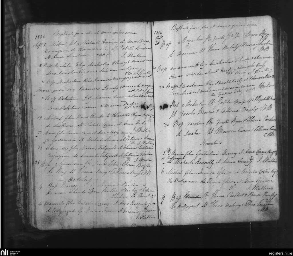 Old and Ring; County of Waterford; Diocese of Waterford and Lismore. Baptisms, Sep. 1850 to Nov. 1850